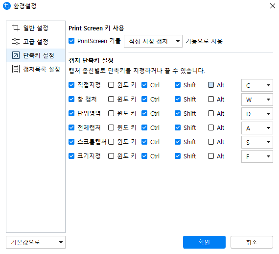 6. 초기 설정에서 단축키가 Print Screen으로 지정되어 있지만,