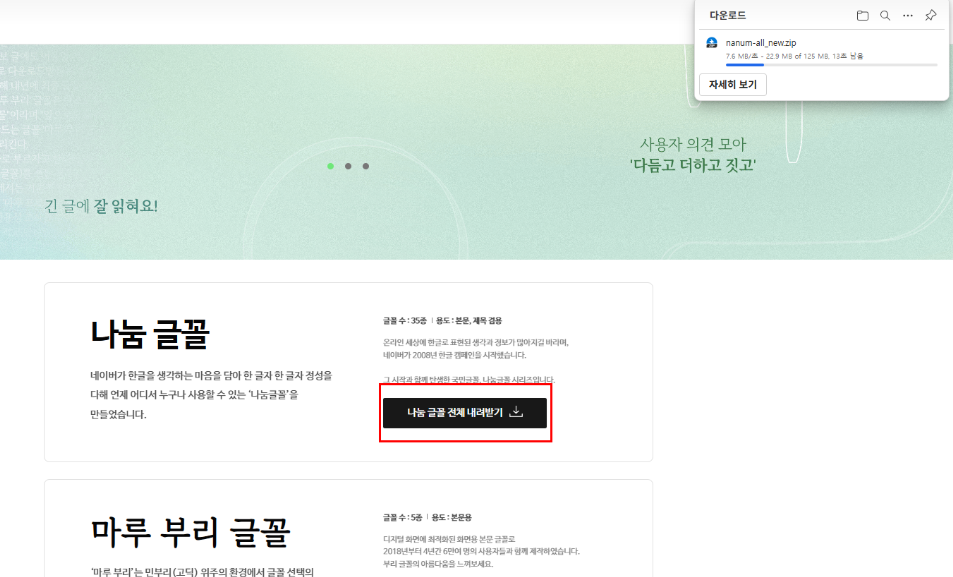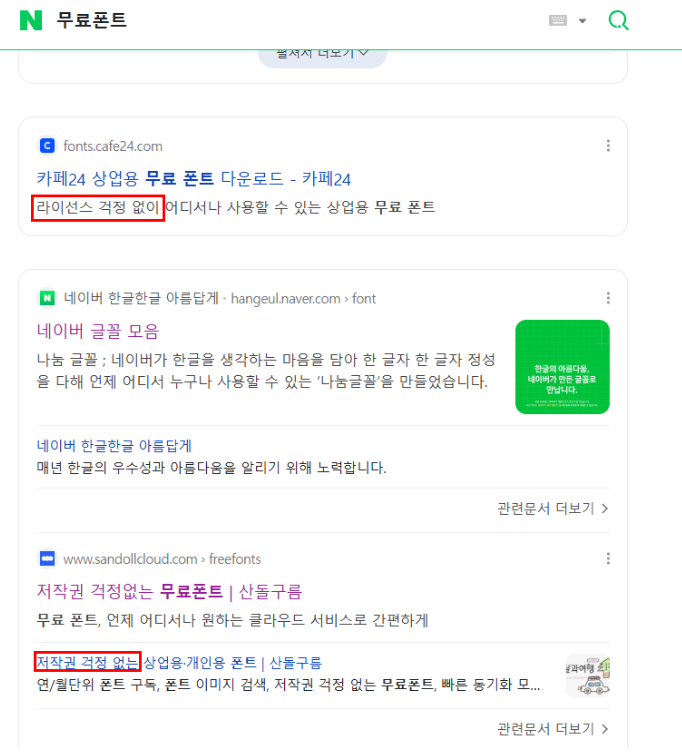 네이버에 '무료 폰트', '안심 글꼴 모음'을 검색하면,
