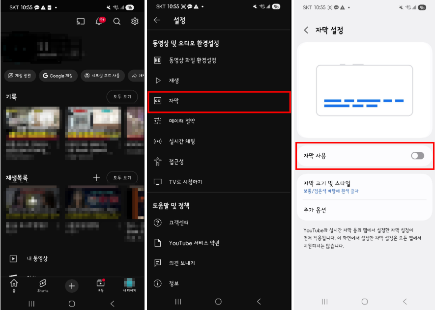 1. 유튜브 자막 자동켜짐 끄는 방법(갤럭시/아이폰)