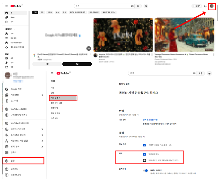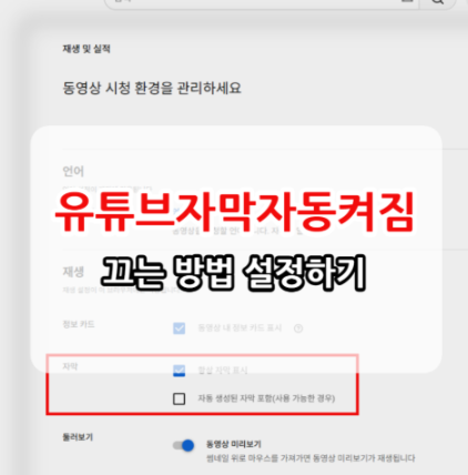 유튜브자막 자동켜짐 끄는 방법 설정 세팅순서