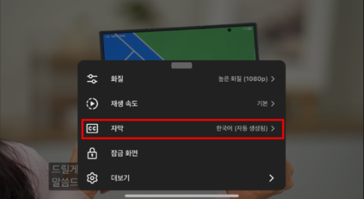 - 동영상 및 오디오 환경설정 → 자막 선택