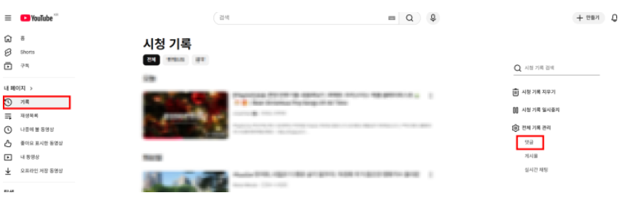2-2) YouTube의 내 데이터 관리 루트