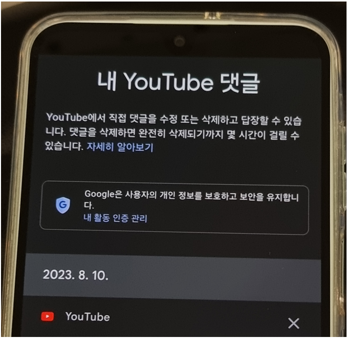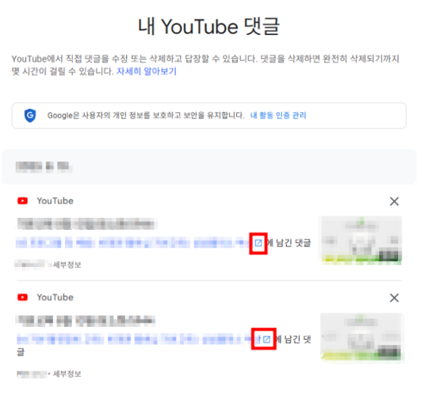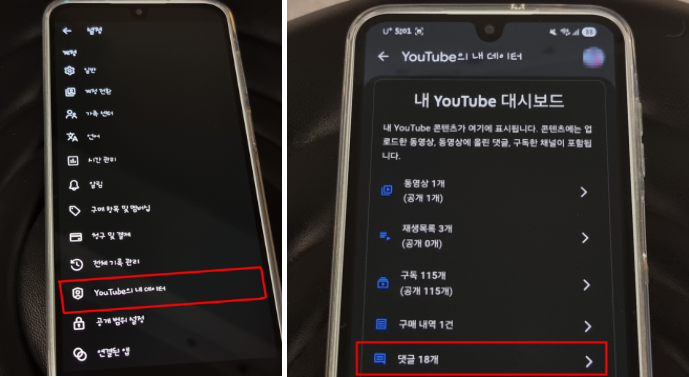 ② YouTube의 내 데이터 → 대시보드 내 댓글