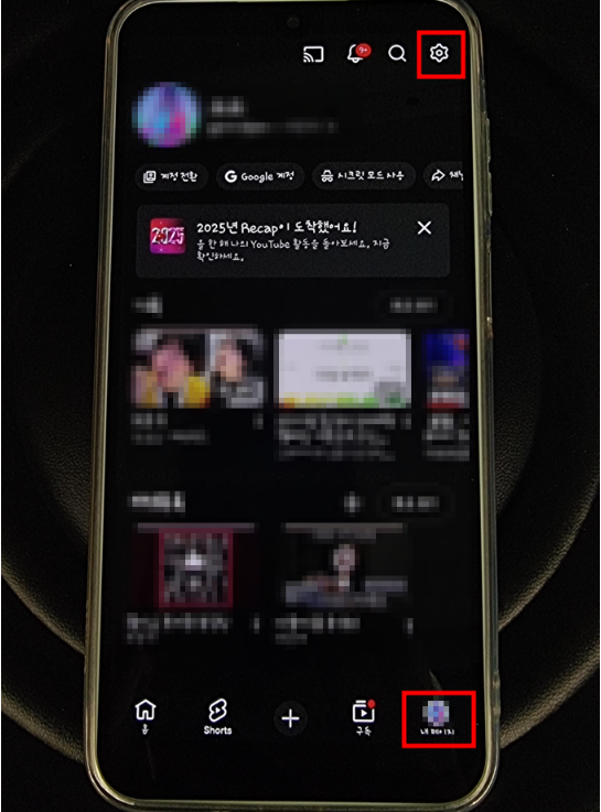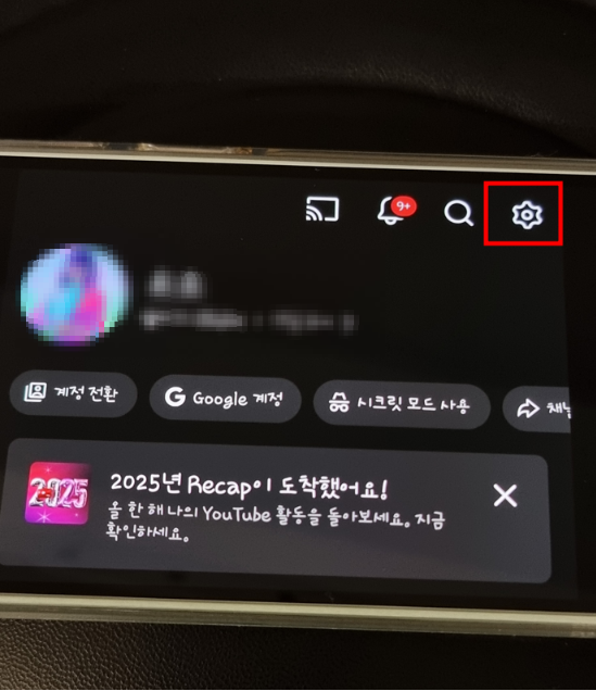 ① 유튜브 앱 실행 우측 하단 프로필 사진 → 설정