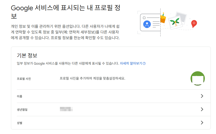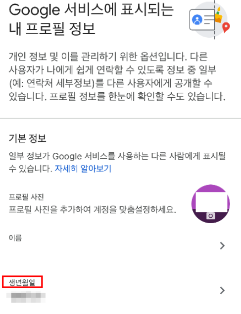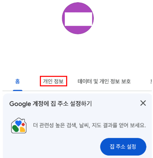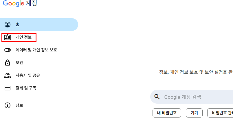 3) Google 계정 관리 → 개인정보 메뉴 선택