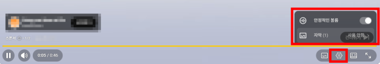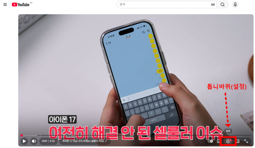 - 영상 우측 상단의 ‘톱니바퀴(설정)’ 클릭