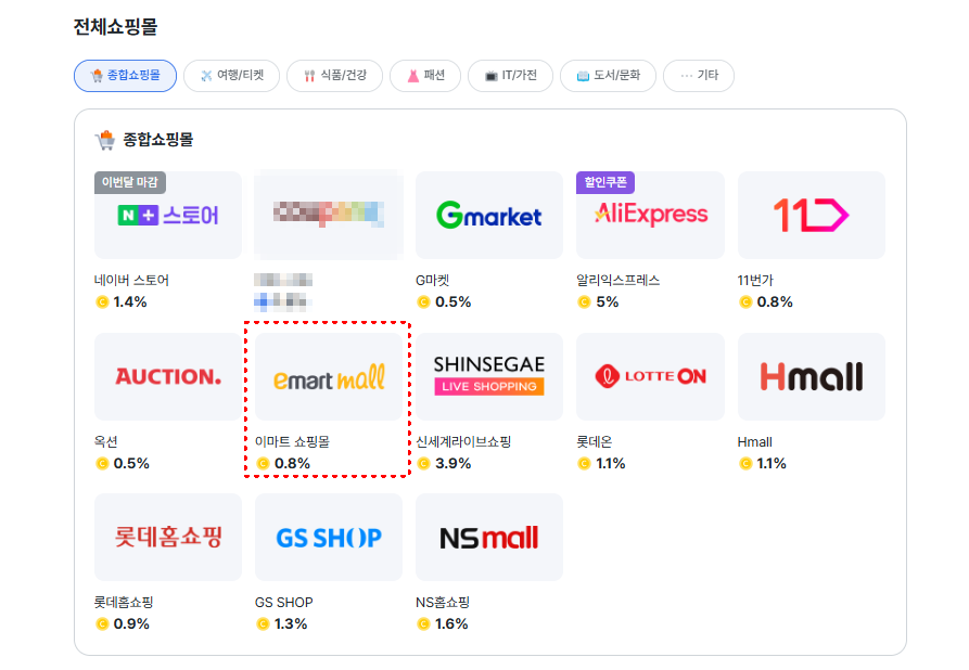 2. 제휴몰 리스트에서 이마트 쇼핑몰 선택