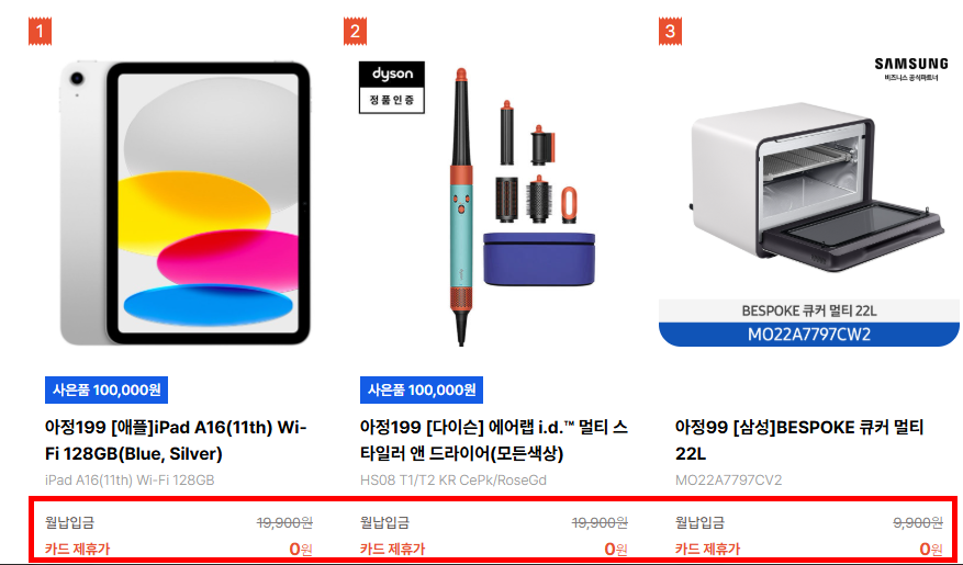 월 0원으로도 가능한 가전 결합