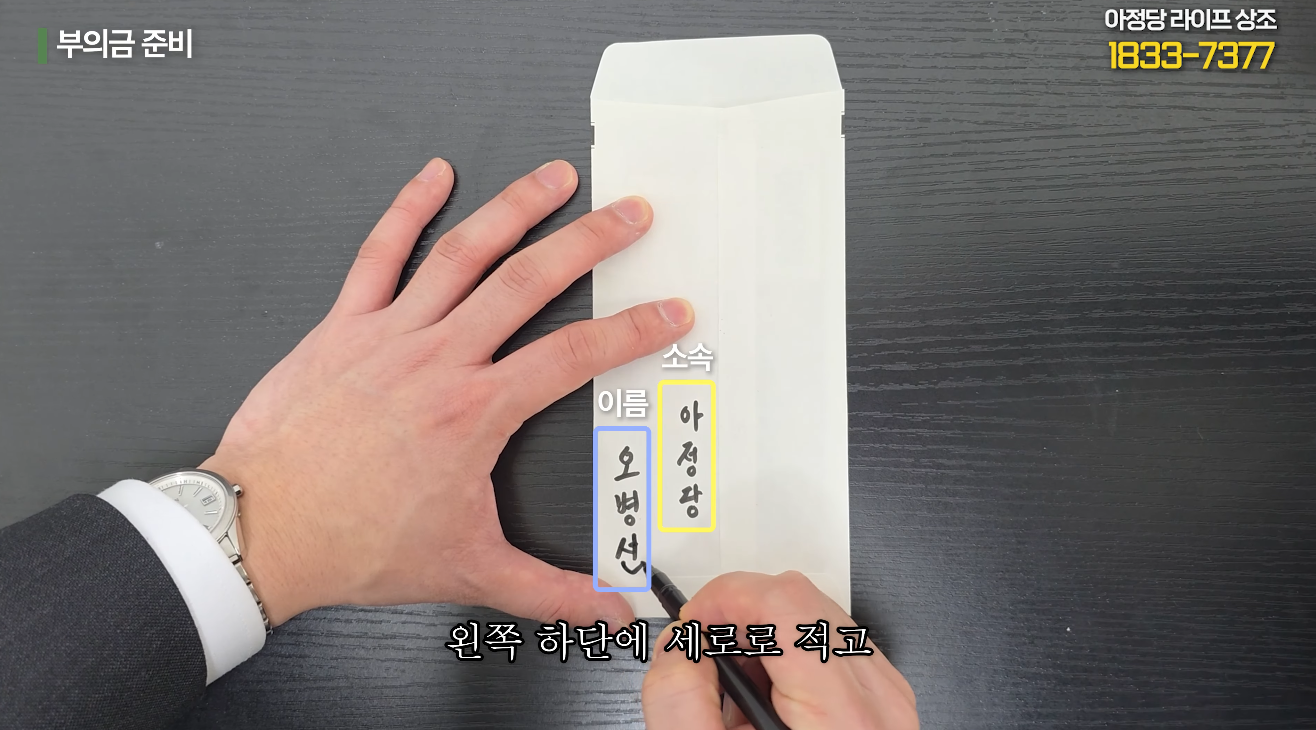 상주가 봉투를 집었을 때 이름을 확인하기 편하며