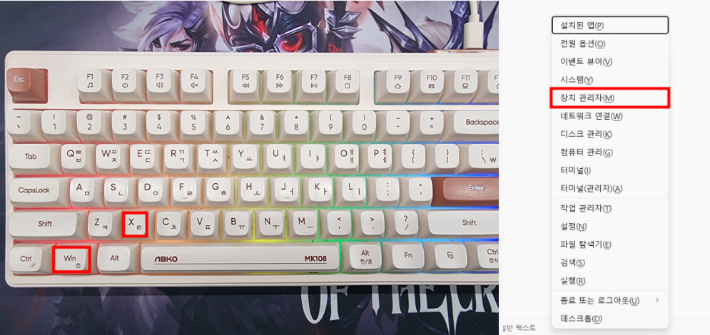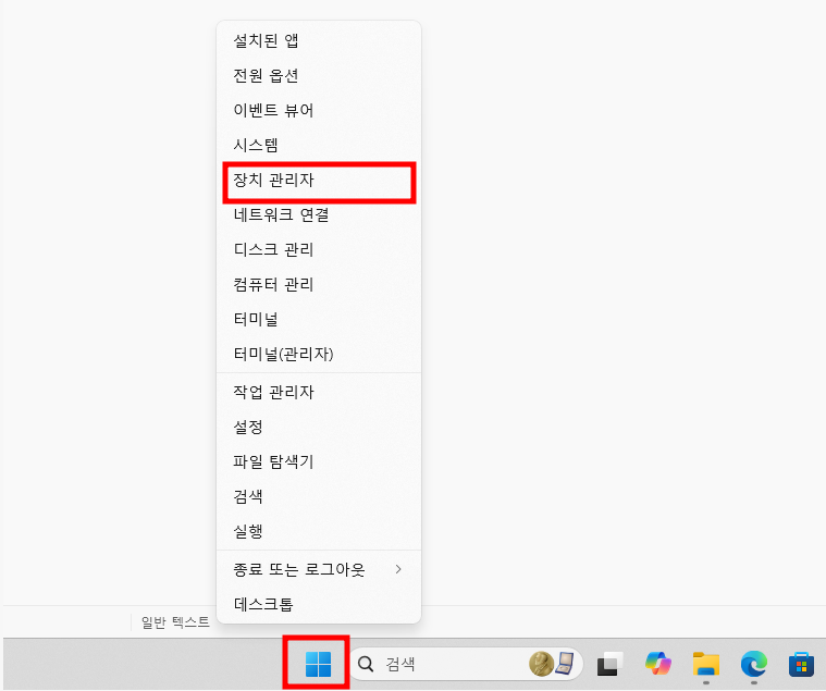 → 목록에서 장치 관리자 선택하면 바로 실행