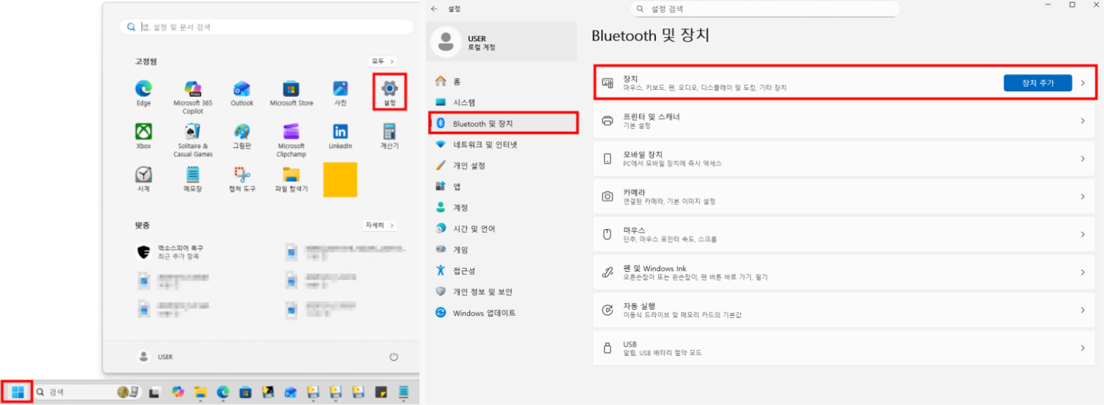 - Bluetooth 및 기타 디바이스 메뉴 내