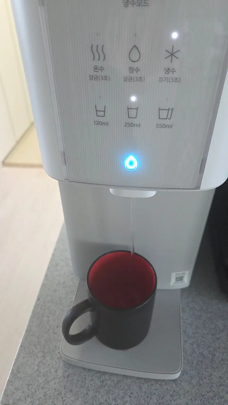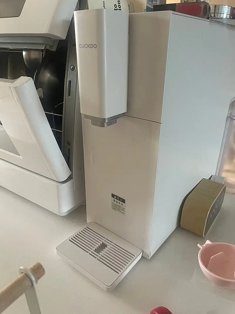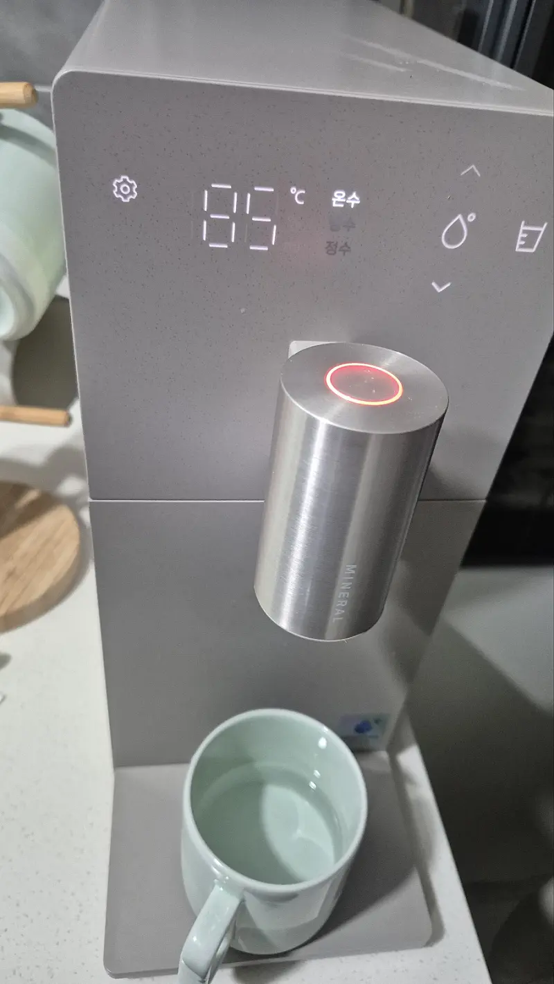 디자인이 이쁘고 크기가 작아서 좋아요 물맛이 깔끔해서 좋아요 직관적이고 반응속도가 빨라요 | 물이 옆으로 튀어요 온수는 바로 받을 수 없고, 시간이 걸려요 |
