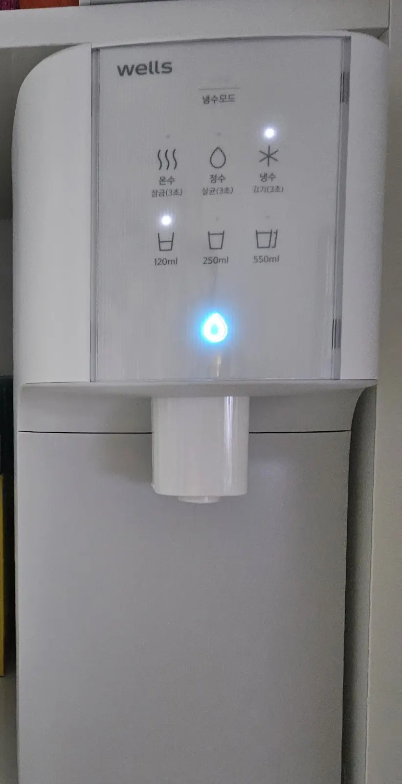 ② 정수, 냉수 버튼을 계속 눌러 물이 안 나오는지 확인합니다.