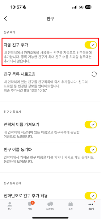 이렇게 하면 연락처를 추가해도 자동으로 친구가 생기지 않아요.