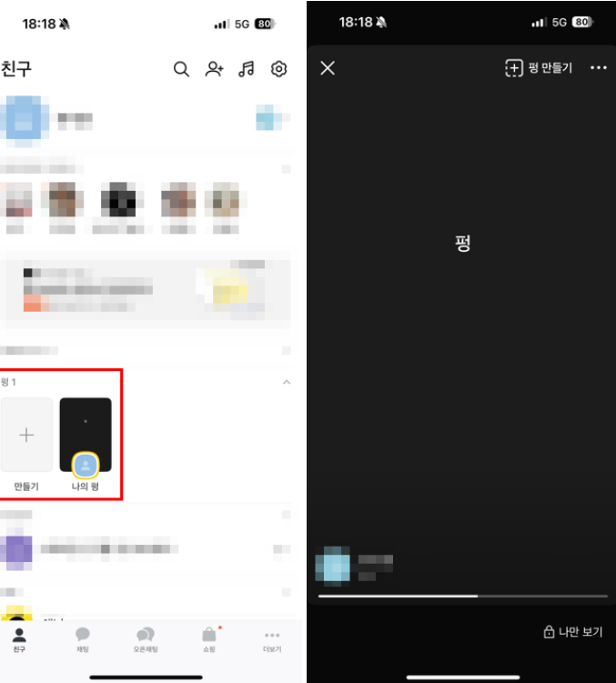 펑은 가볍게 일상 공유하기 좋은 기능인데요.