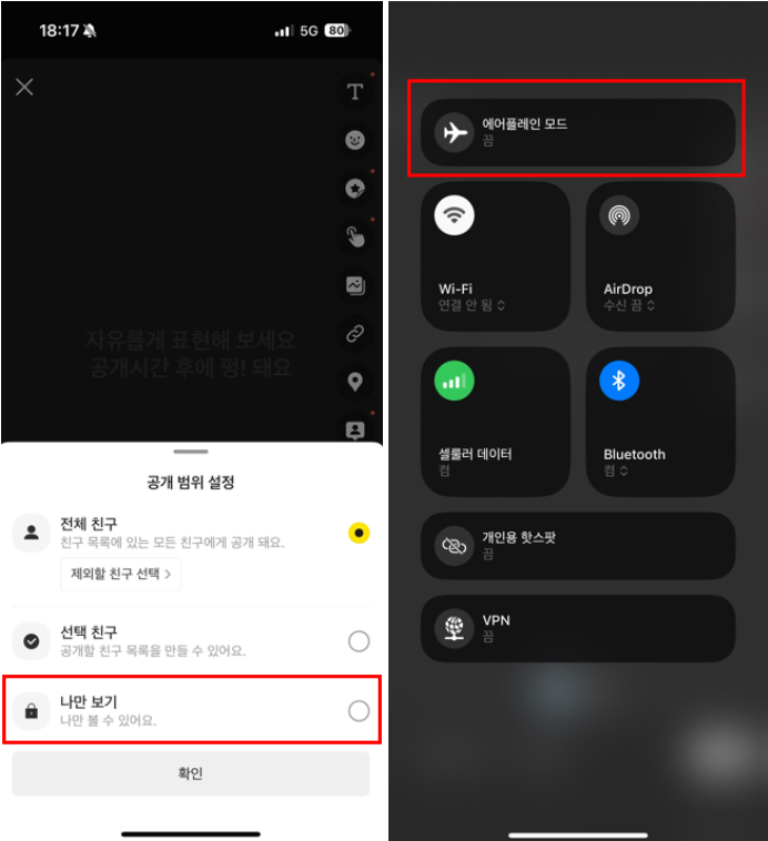 친구 선택 공개를 이용해 실제로 공유하고 싶은 소수에게만 보여주는 방법도 있습니다.