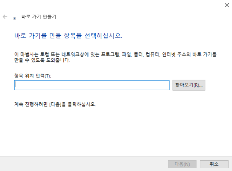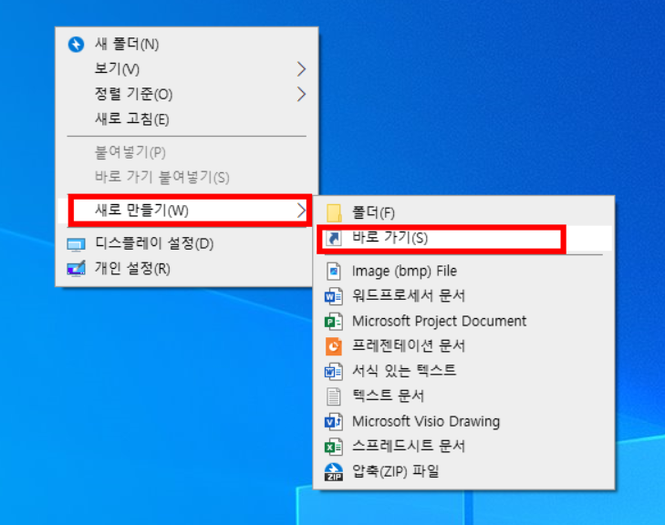 새로 만들기를 클릭 후 바로 가기로 이동해 주세요.