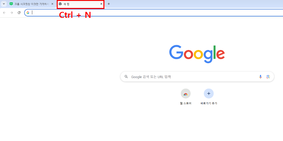 - 새 창 열기 : Ctrl + N -> 웹 브라우저나 파일 탐색기에서 새로운 탭을 열 때
