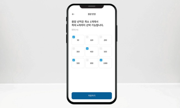 최소 120mL부터 최대 1L까지 정량 추출 가능하며, locare+ 앱을 통해 총 9가지 옵션 중 나에게 맞춰 최대 4개까지 추출 용량을 설정할 수 있어요.