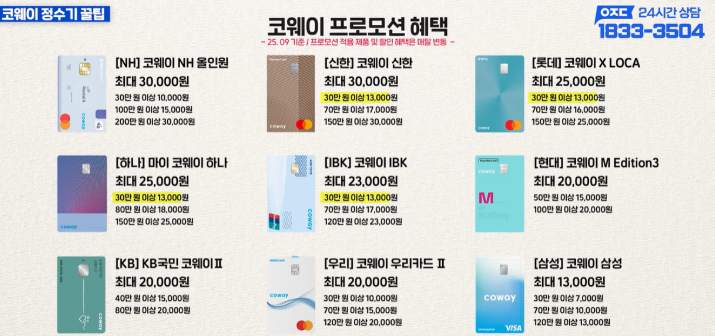 코웨이 빌트인 정수기 렌탈 시, 제휴 카드를 이용하면 렌탈을 더 저렴하게 이용할 수 있어요.