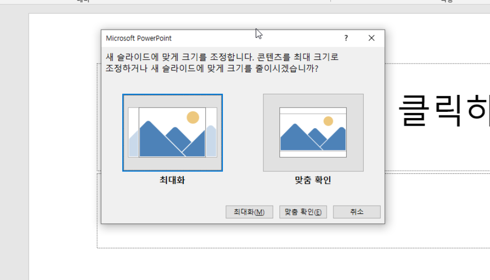 ✅맞춤 확인 : 슬라이드 크기에 맞게 조정