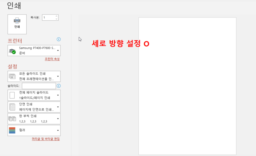 ✅ 파워포인트 세로로 바꾸기 후 출력 용지 규격을 고려
