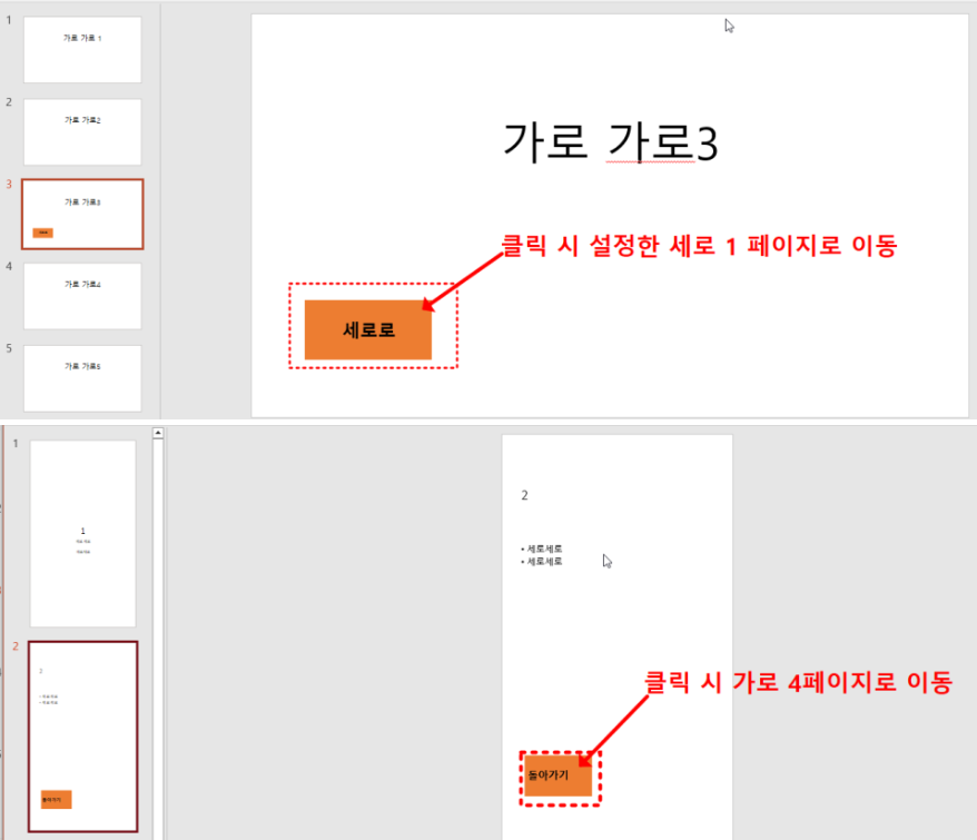 하이퍼링크 버튼 : 가로 3 / 세로 2 페이지에 삽입