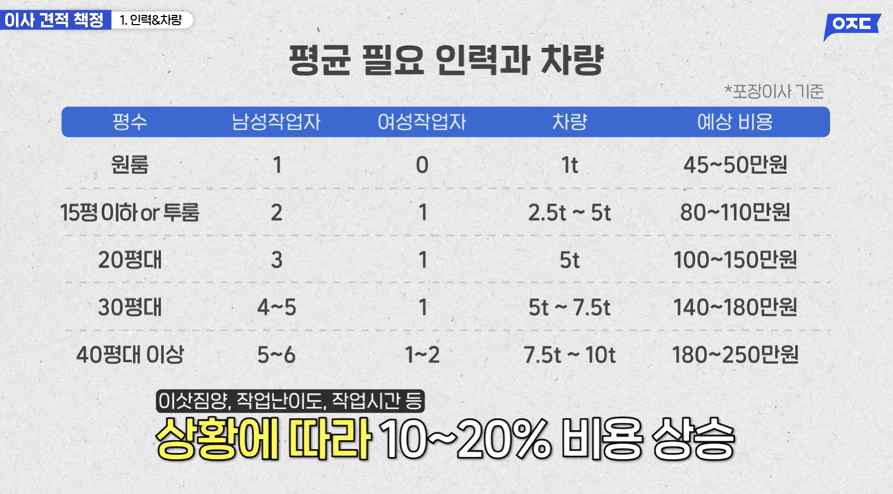 포장이사 인력은 보통 남성/여성 작업자로 나뉘며,