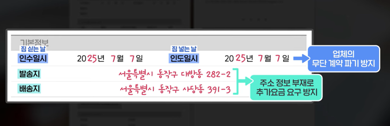 인수일·인도일·발송지·배송지를 정확히 기록,