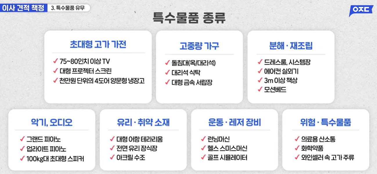 방문 견적보다 짐이 과도하게 늘어난 경우와 같이