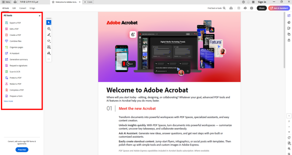| 페이지 전환 효과 | Acrobat → 보기 → 전체 화면 설정 | 슬라이드, 페이드 효과 선택 가능 |