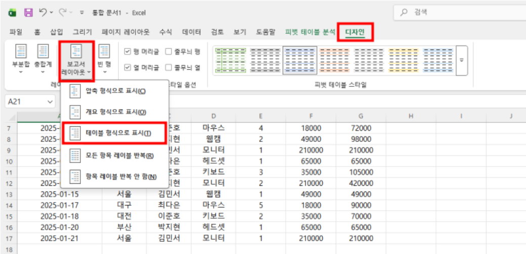 3. 피벗테이블 레이아웃 & 디자인 변경 방법