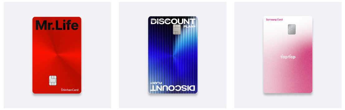 신한카드 Mr.Life | 신한카드 Discount Plan+ | 삼성카드 taptap O |