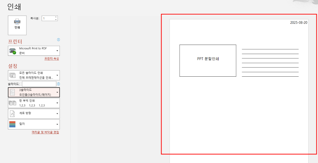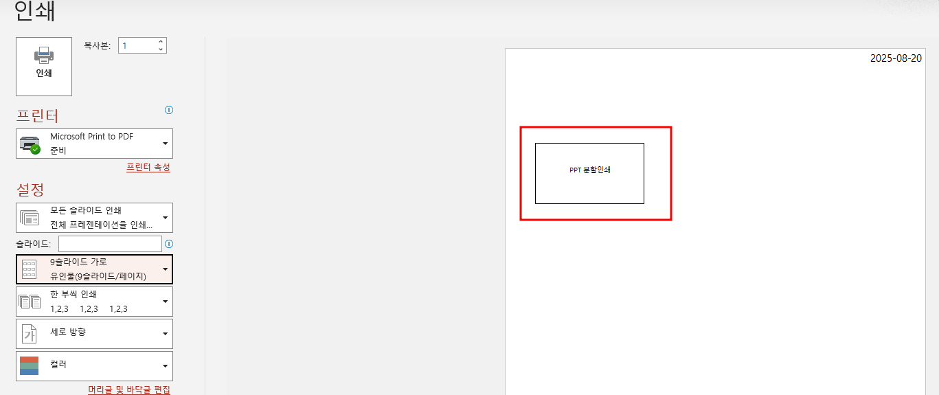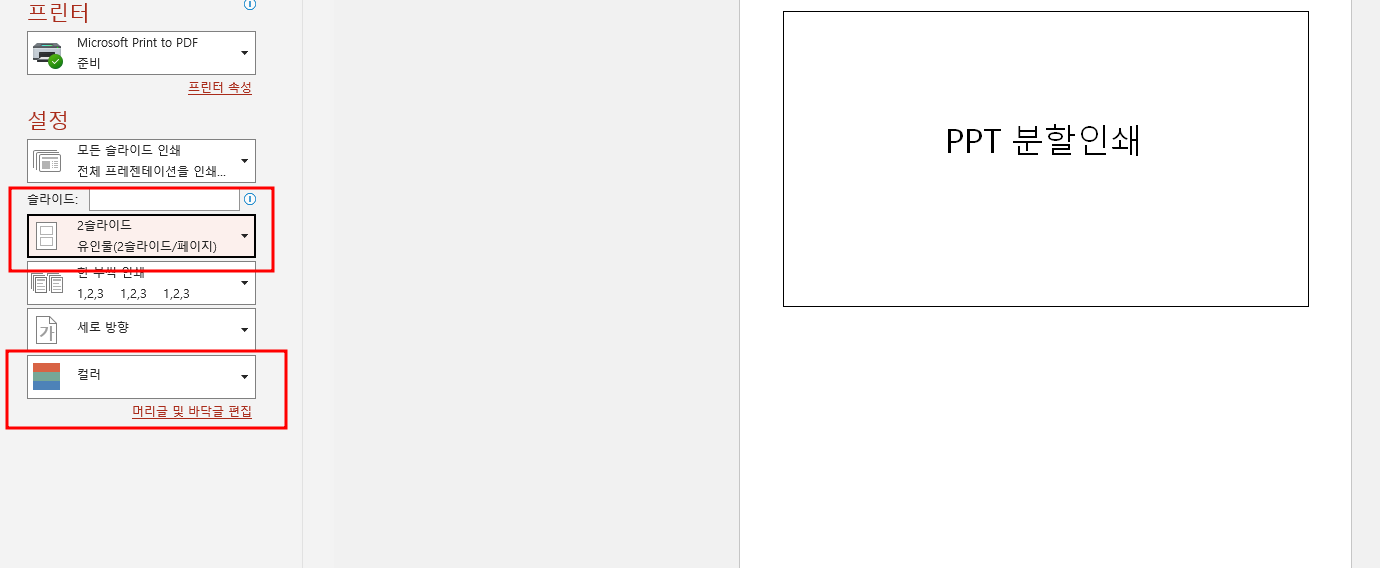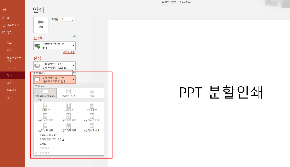 이때 필요한 게 바로 피피티 분할인쇄예요.
