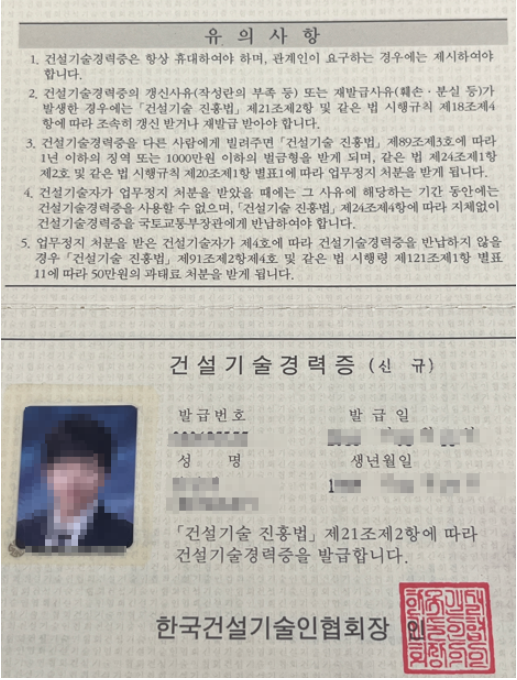 '건설 기술 자격증'까지 필수로 보유하고 있습니다.
