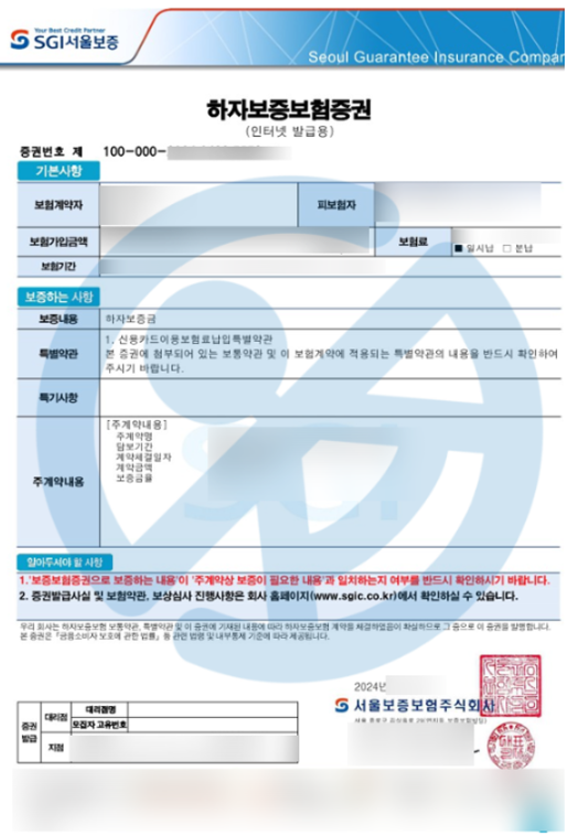 참고로 '하자보증보험’이 발급 가능한 곳은