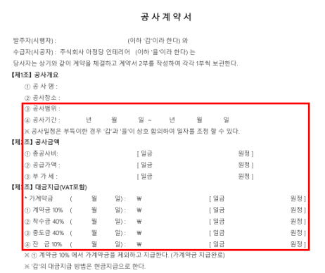 - 공사비 분할 지급 금액
