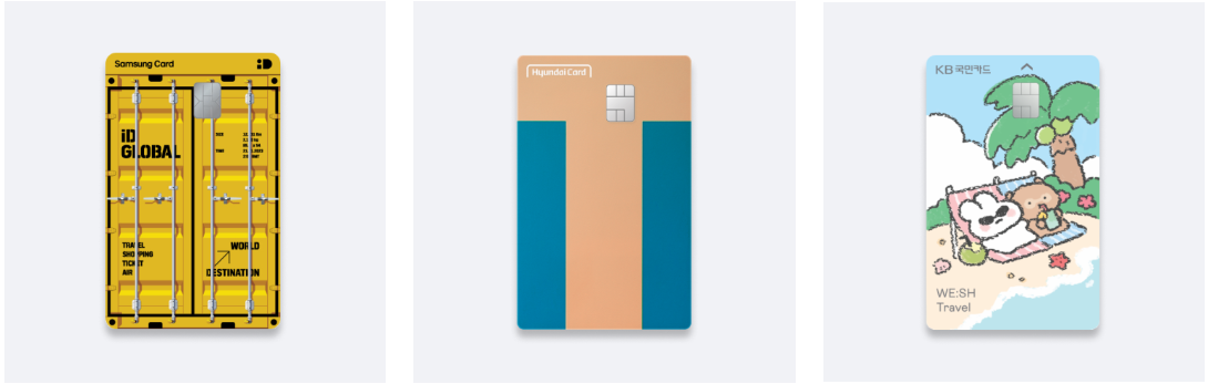 삼성 iD GLOBAL 카드 | 현대카드 T | KB국민 WE:SH Travel 카드 |