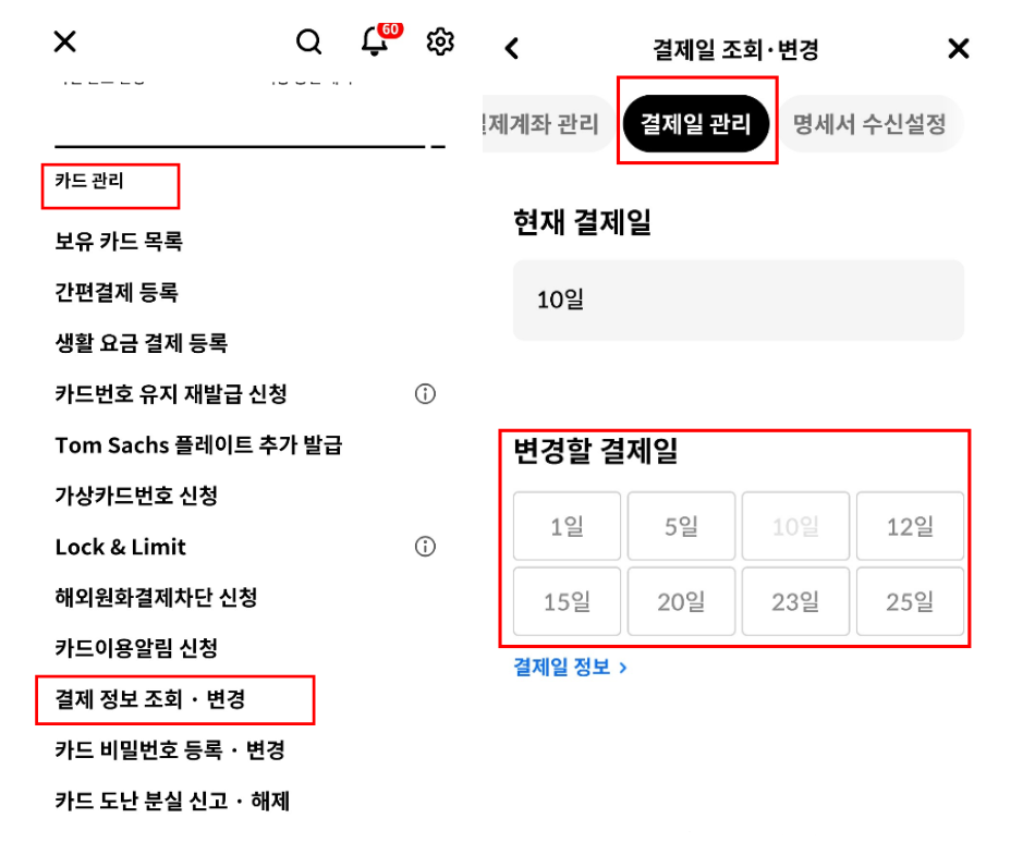 월급날 다음으로 결제일을 설정하면 연체 위험을 줄이고 안정적인 자금 운용이 가능합니다.