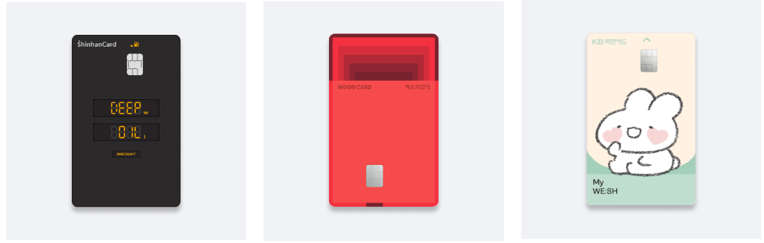 | KB국민 My WE:SH 카드 | 국내 1만5천원 / 해외겸용 1만5천원 | 30만 원 이상 | OTT + 일상 생활비 |