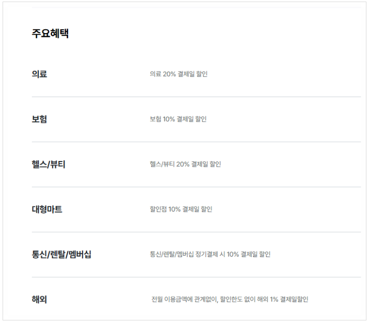 - 혜택별 한도가 나뉘어 집중 소비 시 제한