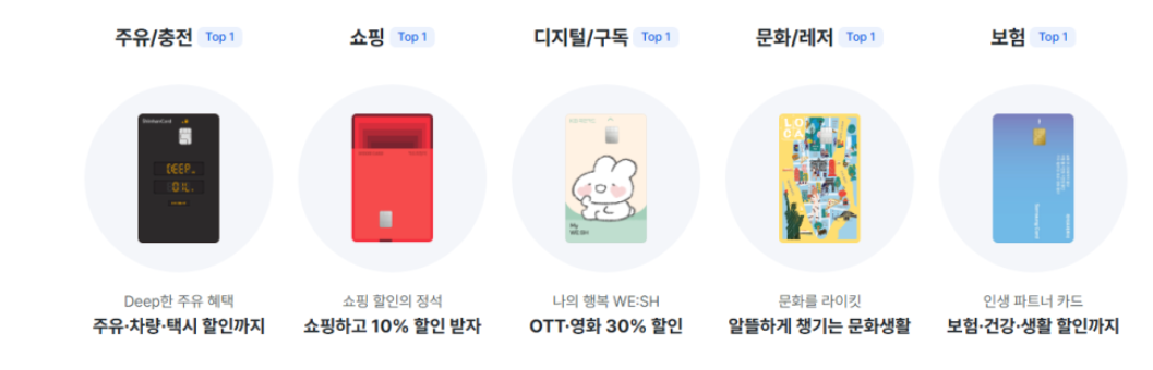 [혜택좋은 신용카드 추천 항목별로 보기]
