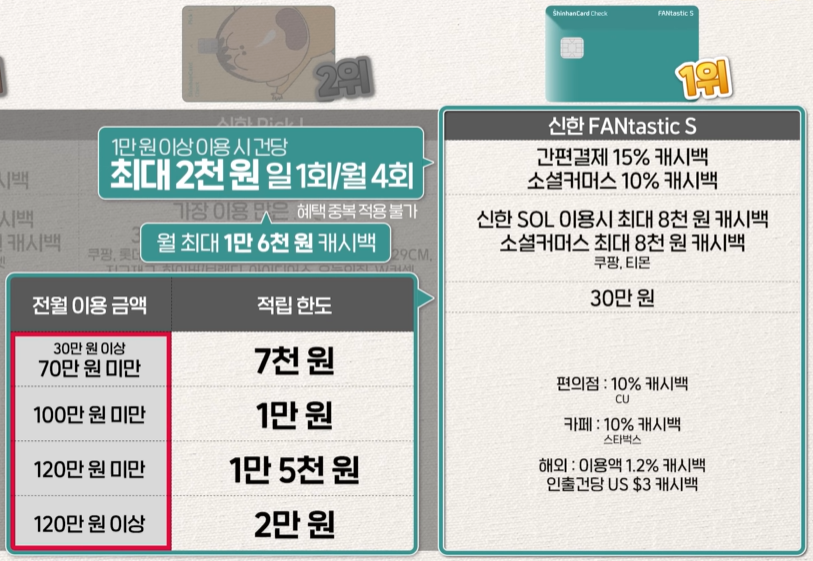1위. 신한 FANtastic S 카드