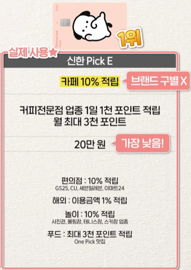 1위. 신한 Pick E 카드