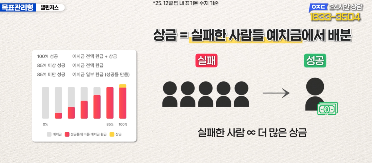 목표를 달성하면 예치금과 상금을 돌려받는 어플입니다.