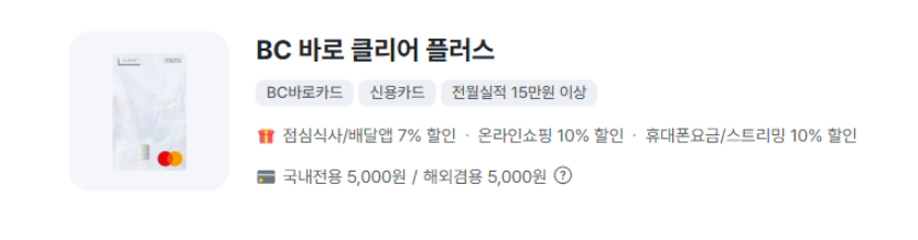 BC 바로 클리어 플러스 카드 다양한 할인 혜택 비교