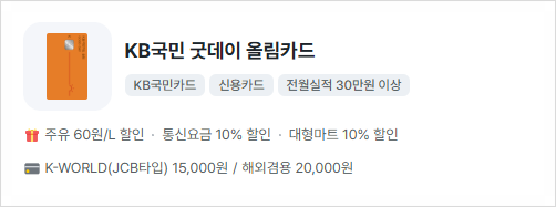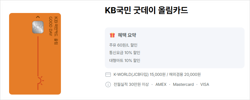 KB국민 굿데이올림카드 주유할인 대형마트 대중교통 다양한 혜택 한눈에 정리