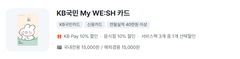 KB국민 My WE:SH 카드는 라이프스타일에 맞는 다양한 할인 혜택을 제공합니다.