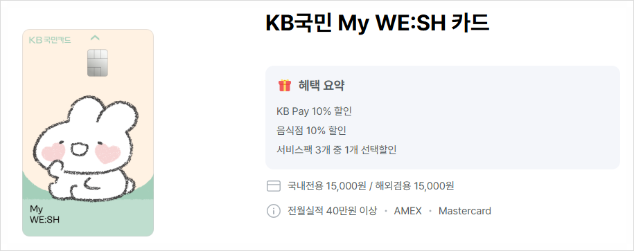 KB국민 마이위시카드(My WE:SH) 실적조건 연회비 혜택 총정리