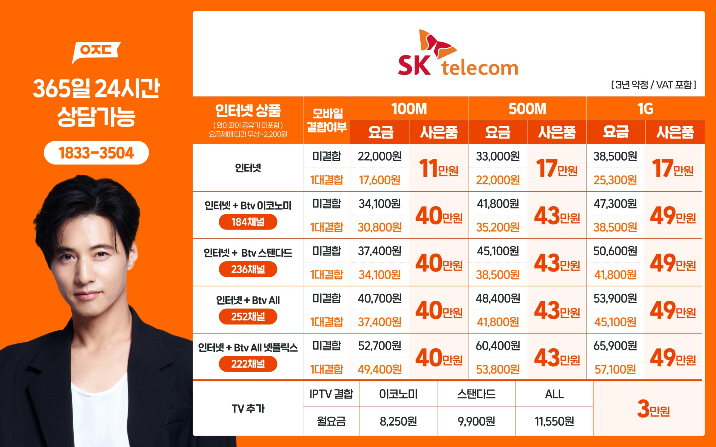 인터넷 단독 | 11만 원 | 17만 원 | 17만 원 |